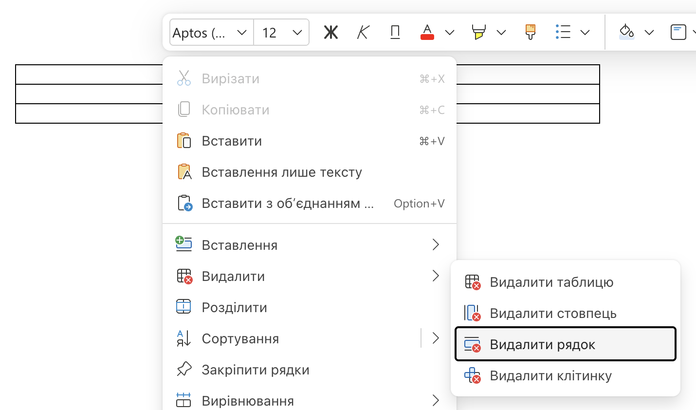 Видалити комірку, рядок, стовпець або всю таблицю.