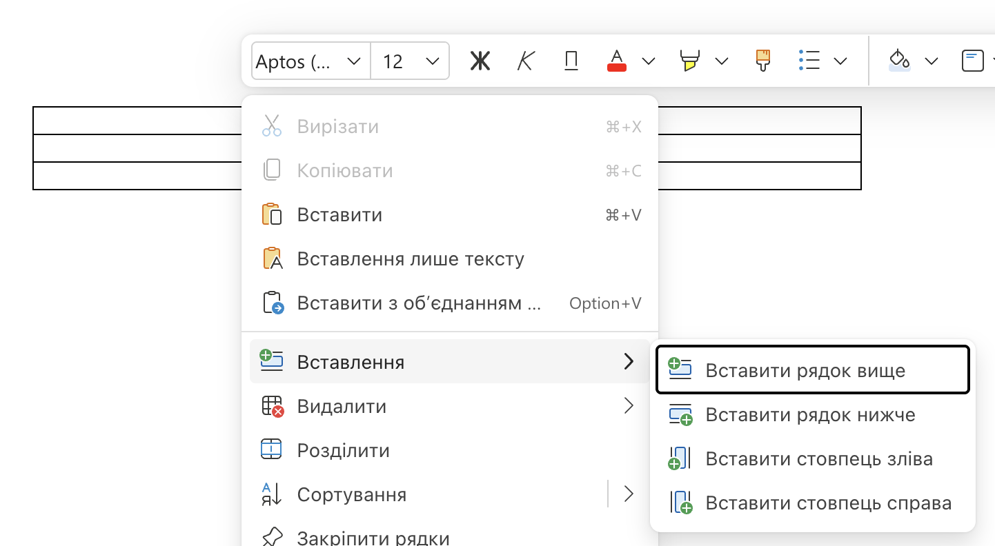 Додати рядок зверху/знизу або стовпець зліва/справа.