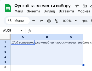 Адреса діапазону: A1:C5 (Ліва верхня клітинка : Права нижня клітинка)
