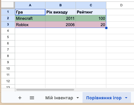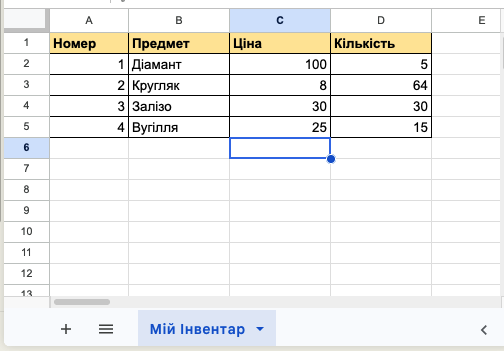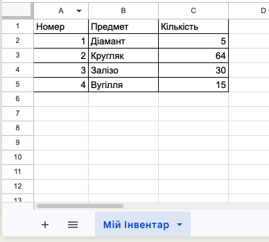 Відкрийте Google Таблиці (або Excel). Ми створимо інвентар геймера.