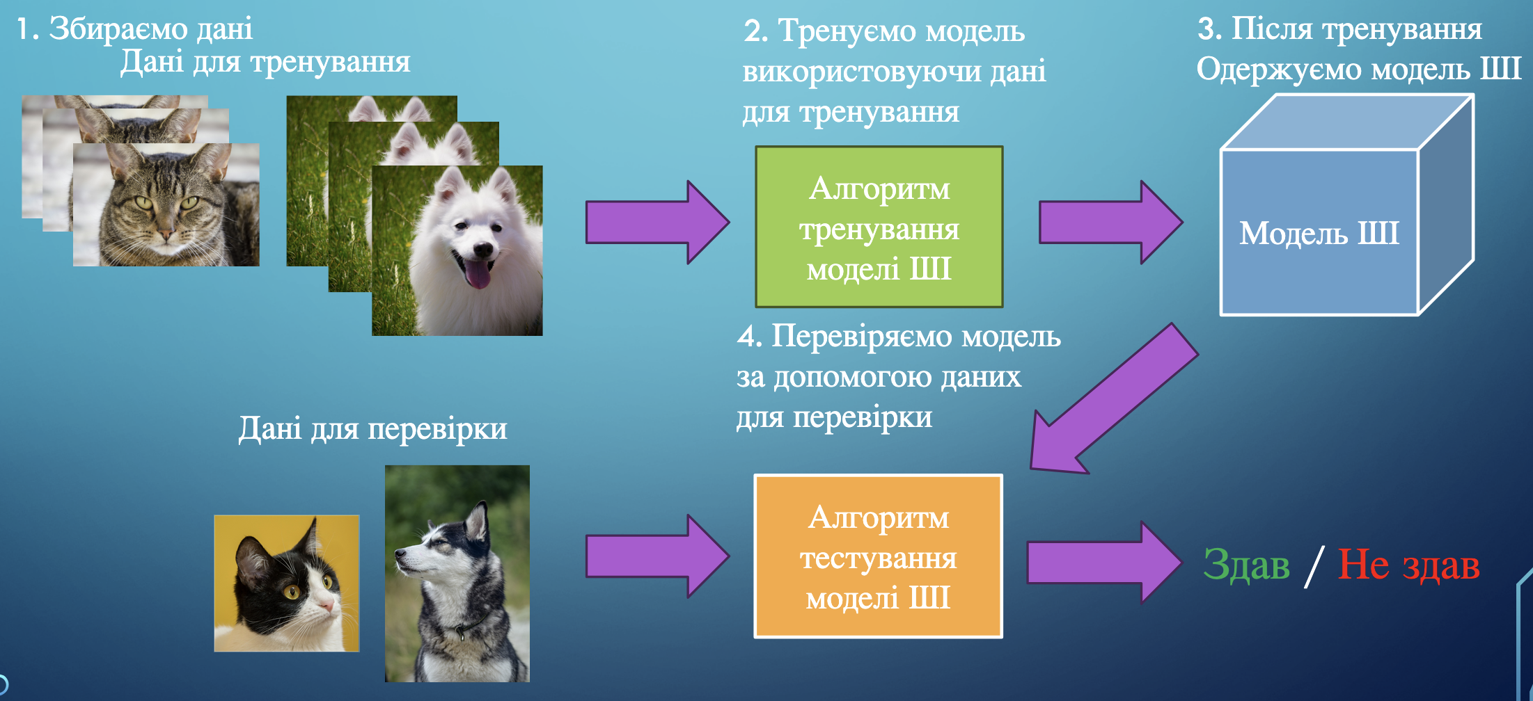 Штучний інтелект (ШІ) — це комп'ютерна система, яка може виконувати завдання, що зазвичай потребують людського інтелекту: розпізнавання мови, аналіз зображень, прийняття рішень тощо.